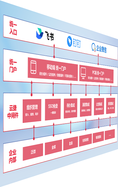 对协作平台提供支持服务,,,支持企业应用与协作平台对接,,,包含组织同步、、消息集成、、待办集成等。。。支持目前主流的协作平台:钉钉、、企微和飞书。。。